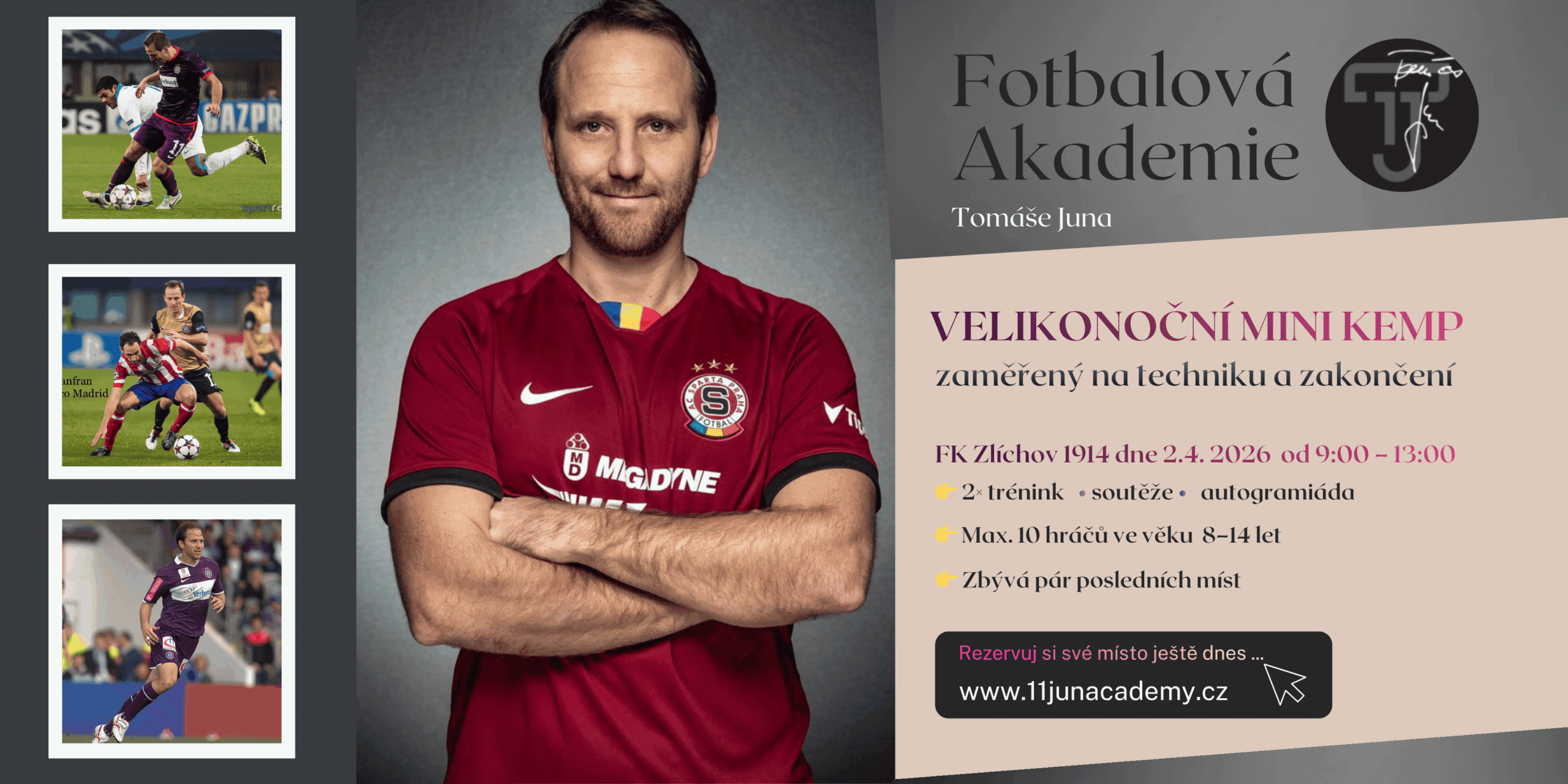 Letní příměstský fotbalový kemp osobně vedený bývalým reprezentantem Tomášem Junem, ve spolupráci se špičkovým týmem odborníků, kvalifikovaných trenerů s licencí a pedagogů, kteří zajištují doprovodný naučně zábavný program. Každý den od 9:00 do 16:00 hodin.